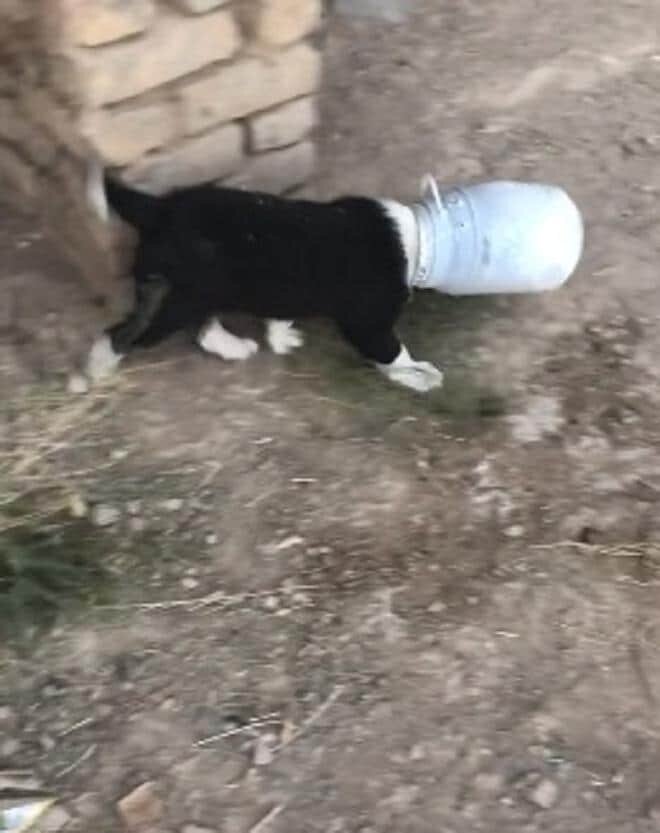 Mężczyźni zaczęli ratować szczeniaka. Śmiertelnie przerażone maleństwo nie chciało zbliżyć się do obcych. Jednemu mężczyźnie udało się go złapać. Zaczął ciągnąć słoik do siebie. Szybko doszedł w sposób, że w ten sposób psa nie da się uratować. Drugi mężczyzna był otoczony przez resztę szczeniąt, łaszących się i merdających przyjaźnie ogonami. Wyglądało to jakby witali swoich wybawców.