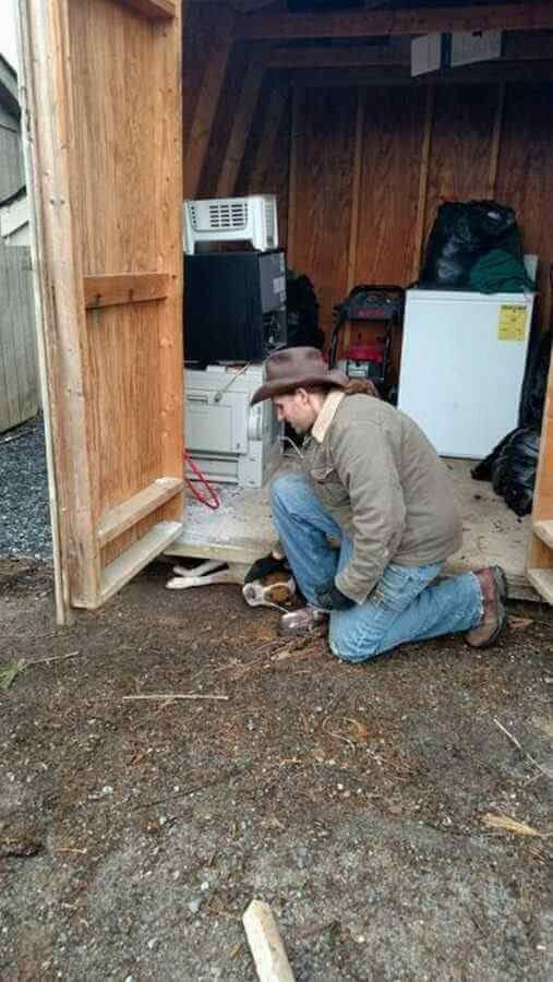 Personel schroniska nie mógł też uwolnić zwierzęcia za pomocą improwizowanych środków. Wtedy jeden z asystentów schroniska, Joey Arnold, przypomniał sobie, że ma w domu lewar. Gdy pobiegł po narzędzie, reszta nie miała innego wyjścia, jak pogłaskać zaklinowane zwierzę.