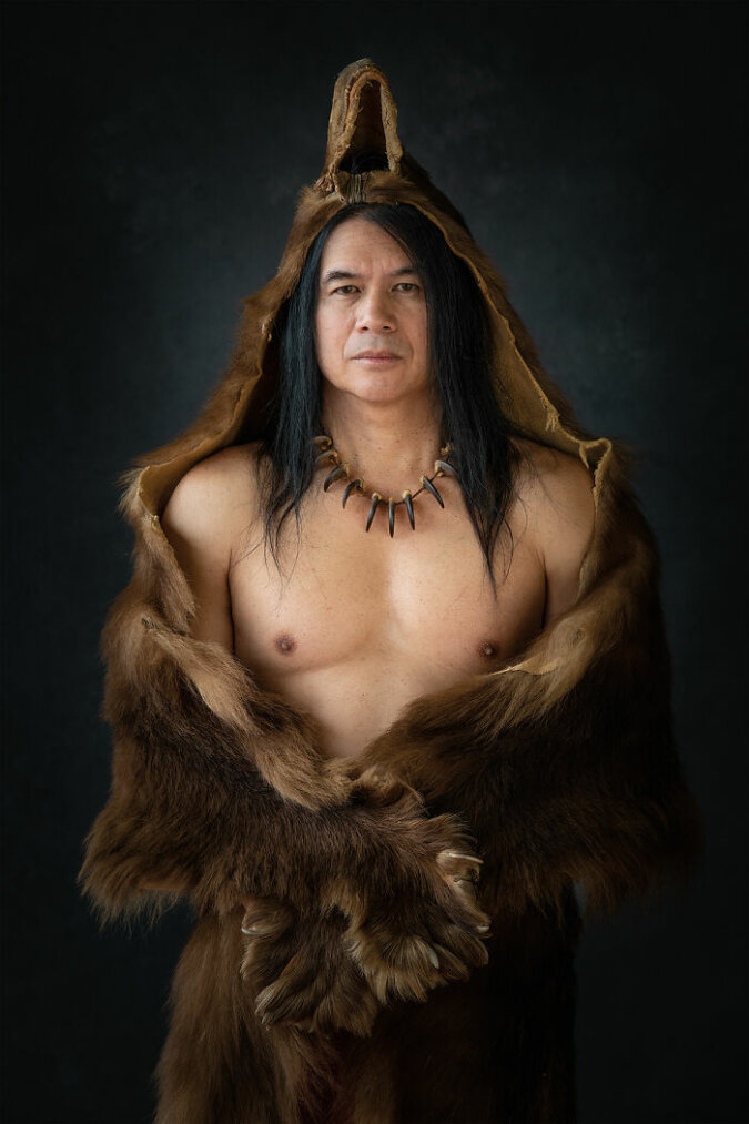 Mężczyzna z Chickasaw w niedźwiedziej skórze