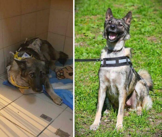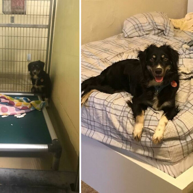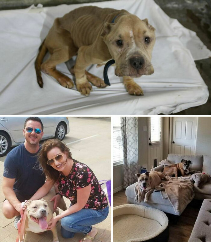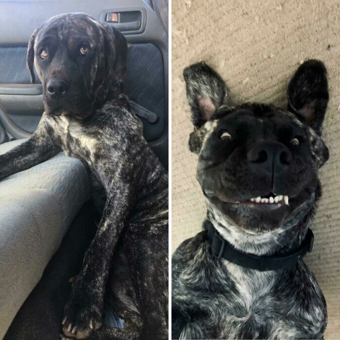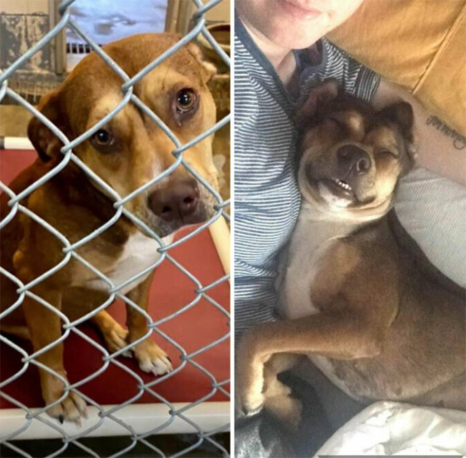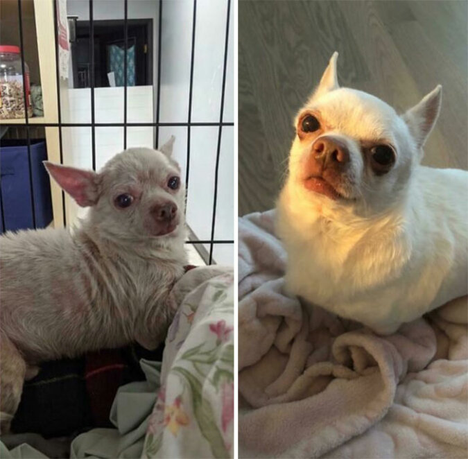 Pies Charlie przed i po tym, jak został przyjęty do nowej rodziny