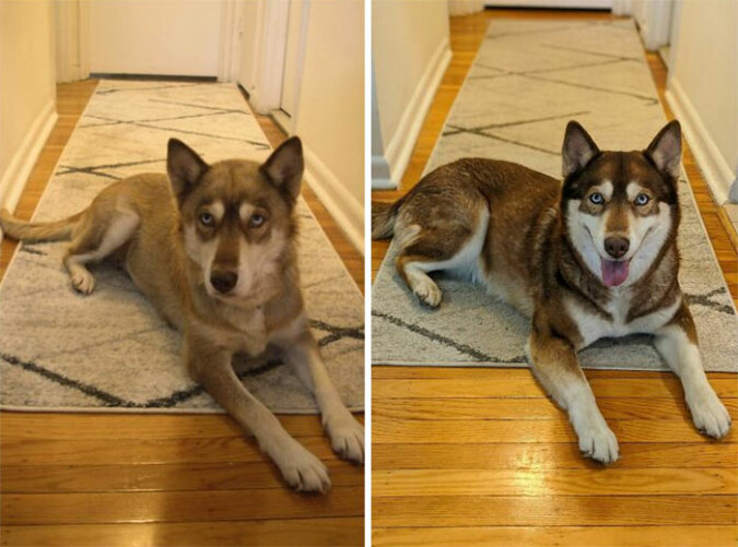 Pierwszy miesiąc nowego, szczęśliwego życia tego psa