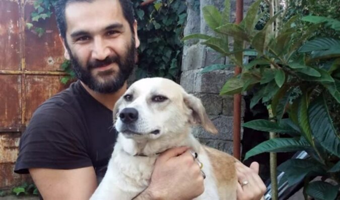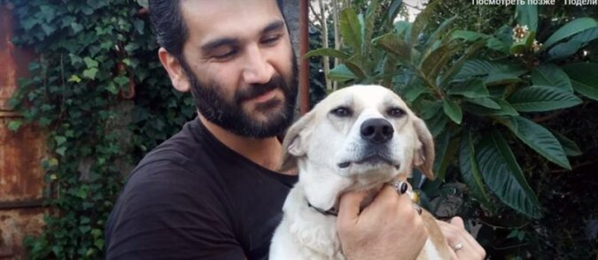 Kiedy wziął psa w ramiona, on zaczął piszczeć. Mieszkając na ulicy, pies nie zaznał niczego dobrego od ludzi i nigdy nie był głaskany...