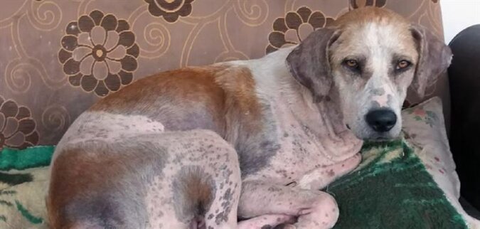 Kilka tygodni później sierść zaczęła odrastać, a pies się zmienił.