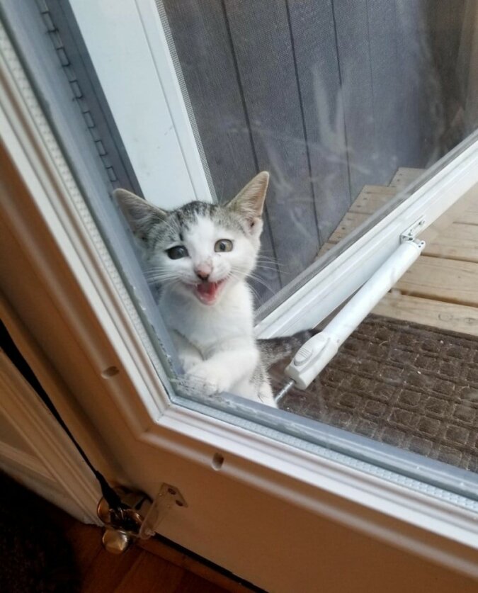 Wkrótce kociak zaczął pojawiać się kilka razy dziennie, a po pewnym czasie się ośmielił, że zaczął nawet zaglądać w okno rodziny, aby przypomnieć im o jedzeniu.