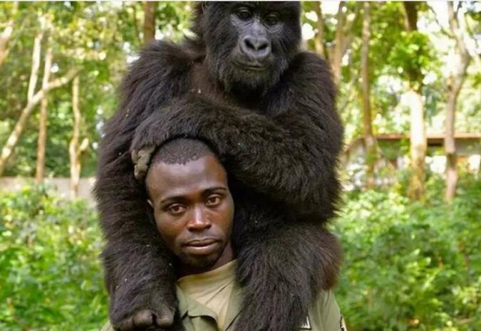 W zeszłym roku popularne stały się zdjęcia innego strażnika, który zaprzyjaźnił się z osieroconym gorylem.
