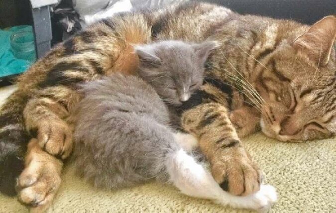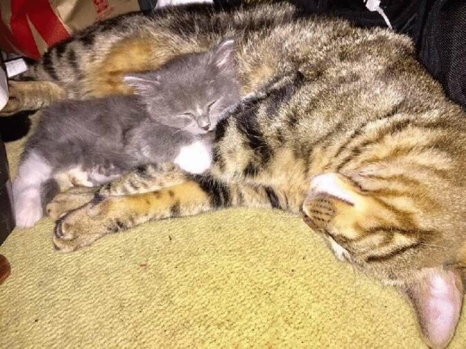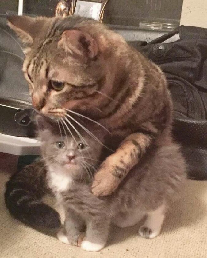 To, co stało się później, sprawi, że nawet najbardziej bezduszna osoba na świecie poczuje się wzruszona. Andy przytulił przestraszonego kociaka łapami i zaczął się nim opiekować, jakby chciał go pocieszyć i uspokoić.