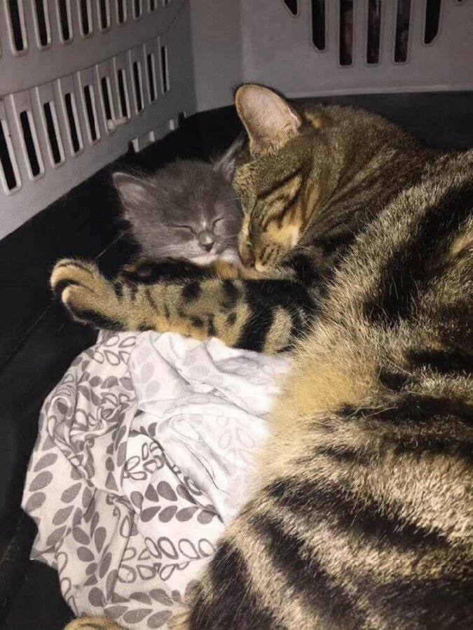 W międzyczasie Andy był zawsze przy kociaku i każdej nocy pomagał swojej ludzkiej matce. Teraz on i jego młodszy futrzany brat są nierozłączni.