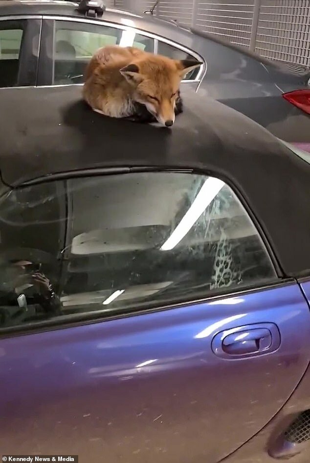 Z jednej strony widok lisa w centrum miasta, na parkingu, do tego w tak spokojnym stanie, to z pewnością rzadkość! Z drugiej strony wszystko jest logiczne - muzyk ma kabriolet z podnoszonym dachem wykonanym z tkaniny. Spanie na takim „łóżku” jest dużo bardziej miękkie i wygodniejsze niż na zimnych metalowych dachach innych samochodów! Więc lis dokonał właściwego wyboru i całkiem rozsądnie nie chciał nigdzie iść. Śpisz sobie, odpoczywasz, a potem przychodzą i każą schodzić!