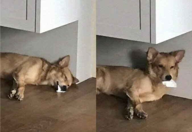 Najwyraźniej ten pies próbował zażartować. I zdecydowanie mu się to udało.