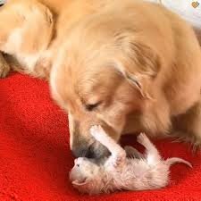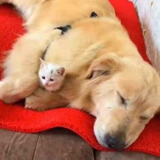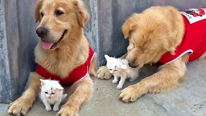 Mały bezdomny kociak stracił już nadzieję na znalezienie domu i rodziny, gdy nagle z pomocą przyszedł mu Golden Retriever!