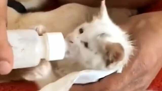 Na załączonym poniżej filmiku możesz zobaczyć, jak ludzie karmią kociaka z butelki i jak słodki stał się po kąpieli i karmieniu.