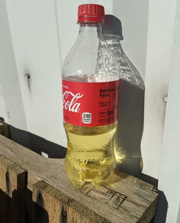 Ten człowiek postanowił zrobić mały eksperyment. Więc zostawił butelkę Coca-coli na słońcu przez jeden miesiąc. Chłopak podzielił się tym, co zobaczył oraz swoimi doświadczeniami na własnym blogu internetowym. W ciągu miesiąca zawartość butelki zwykłej Coca-coli zmieniła się nie do poznania. Charakterystyczny brązowy kolor tego napoju zmienił się na jasnożółty, napój stał się prawie bezbarwny, przezroczysty.