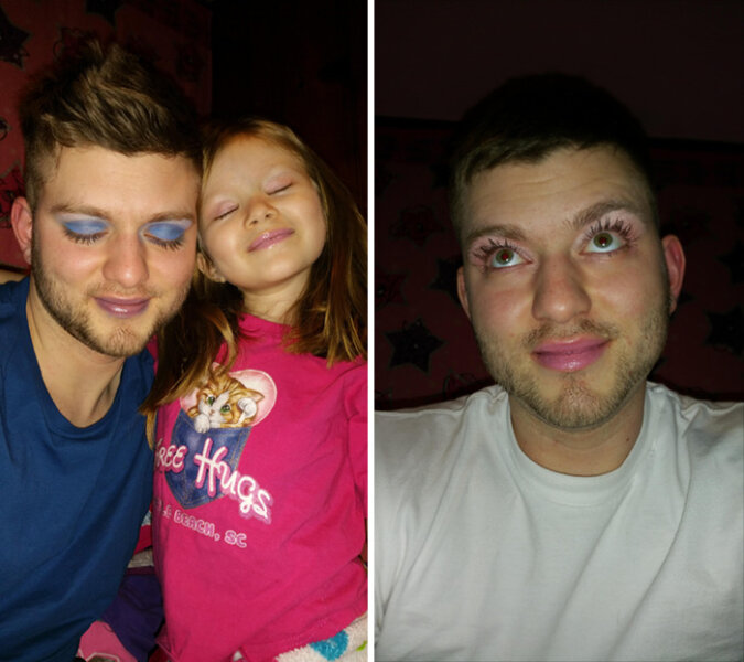 Co kochający ojciec jest w stanie zrobić dla swojej księżniczki? Dużo, w tym może być jako model dla początkującej wizażystki. Najważniejsze to nie śmiać się w trakcie i nie zapomnieć na końcu żeby pochwalić córeczkę bez względu na to, co zobaczysz w lustrze.