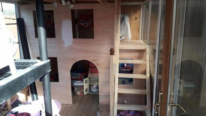 Ponieważ jego syn uwielbiał robić coś własnymi rękami i zamierzał pójść na studia budowlane, poprosił go, aby spełnił marzenie swojej młodszej siostry i zbudował dla niej domek zabaw ze starej altany.