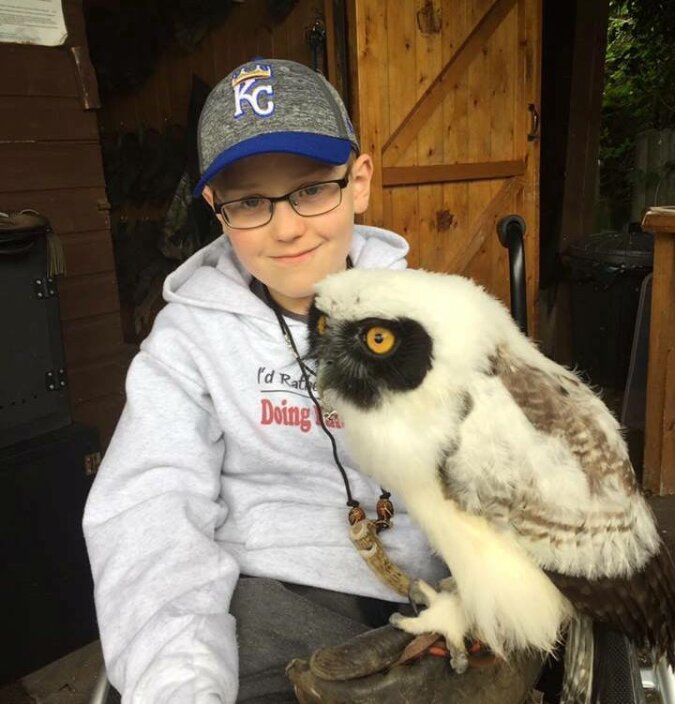11-letni chłopiec z Anglii Alex Goodwin zmaga się z okropną chorobą od około trzech lat. Zdiagnozowano u niego raka kości. Chłopiec musiał dużo przejść: chemioterapię i radioterapię, operację. Aby jakoś wesprzeć dziecko w trudnym dla niego okresie, tata zaczął go zabierać do ośrodka z sowami, znajdującego się 100 mil od ich domu.