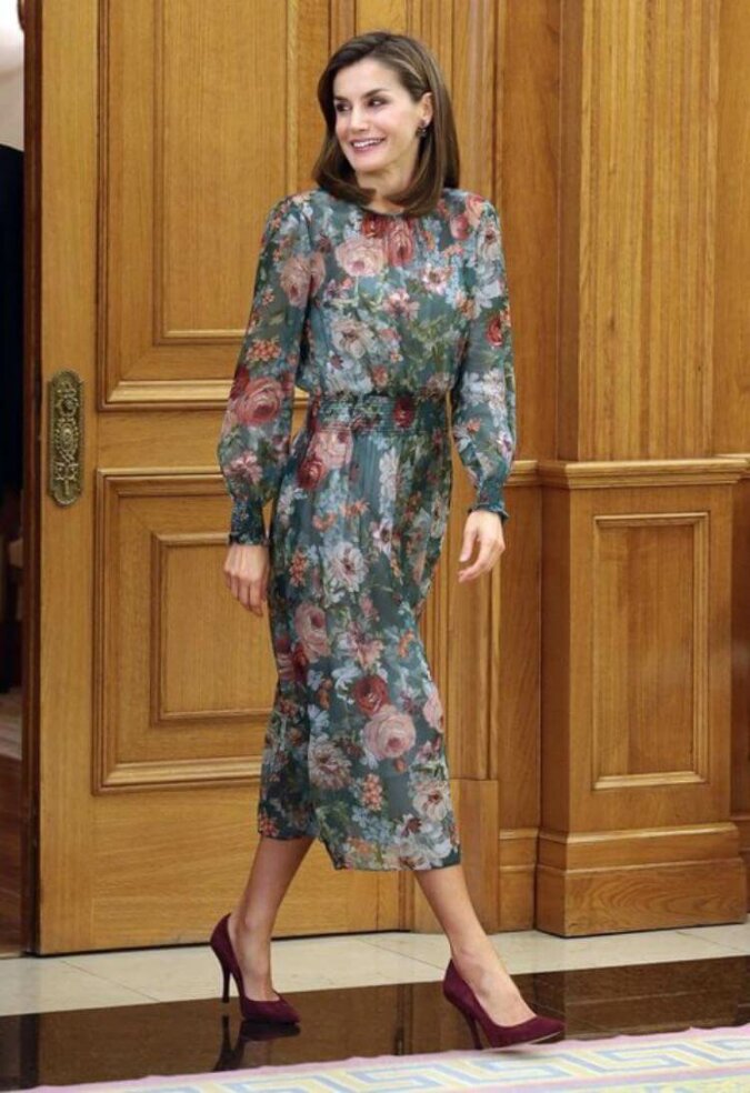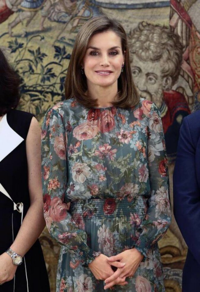 45-letnia królowa Hiszpanii Letizia (Letizia Ortiz Rocasolano) na własnym przykładzie udowodniła, że „rynek masowy” może wyglądać luksusowo. Żona króla Hiszpanii Filipa VI przyjęła gości w swojej rezydencji w Madrycie. Wyszła do publiczności w szyfonowej sukience Zara z kwiatowym nadrukiem.