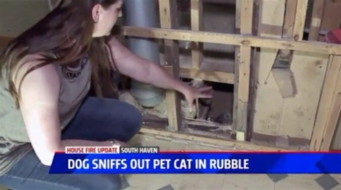 Christina opowiedziała później, jak usłyszała słabe miauczenie dochodzące spod desek. Kobieta, świecąc latarką w tę dziurę, zobaczyła tam kota.