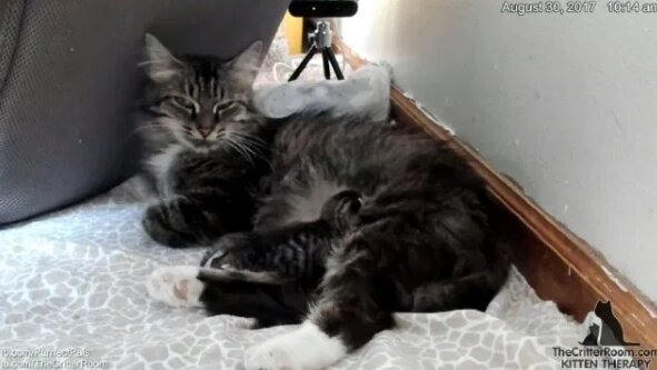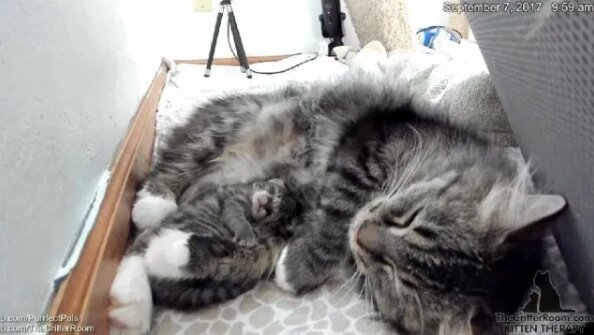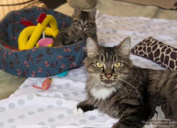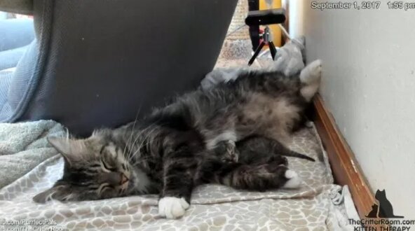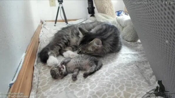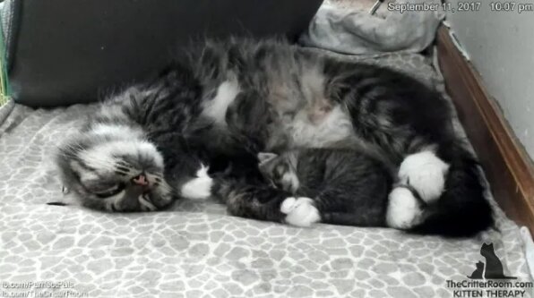 Lekarze weterynarii, którzy mieli wykastrować Shelby, ze zdziwieniem znaleźli w jej brzuszku kolejne pokolenie kociąt. John, doświadczony adopcyjny ojciec z The Critter Room, sprawił, że nowa matka poczuła się jak w domu - wszystko było gotowe na narodziny nowych „dzieci”.