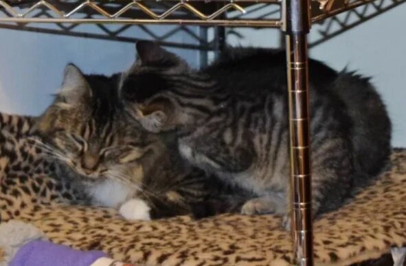Gdy kocięta zaczęły chodzić, złapano je i zawieziono do lokalnego schroniska. Stamtąd zabrane zostały przez działaczy na rzecz praw zwierząt Purrfect Palls (Waszyngton) i natychmiast zostały przekazane w troskliwe ręce opiekunów.
