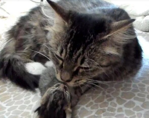 Dwuletnia kotka Shelby została znaleziona tuż przed porodem przez jedną troskliwą osobę, która ją przypadkowo zobaczyła, a następnie nakarmiła w pierwszych dniach macierzyństwa.