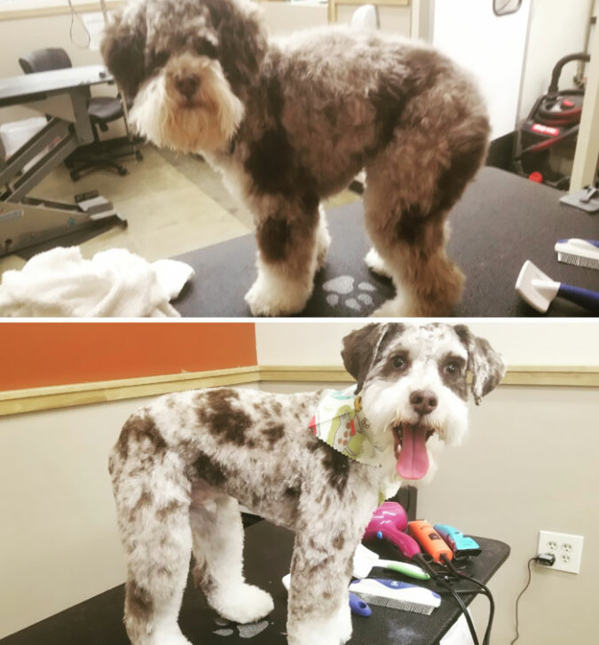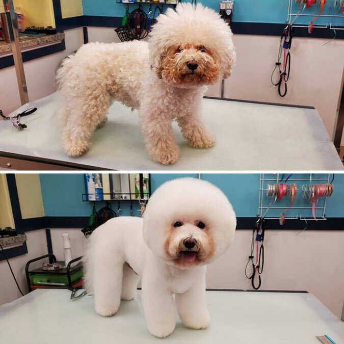 Robić fryzurę trzeba wszystkim i tak powinno być. Aby pasożyty się nie pojawiły, aby dostosować się do klimatu i aby ułatwić utrzymanie higieny. Jeśli więc jest pies, to przynajmniej raz w roku musi odwiedzać groomera! Ważne jest, aby wybrać odpowiedniego fryzjera i skrupulatnie przekazać to, czego chcesz. Bo inaczej możesz dostać psa, którego po prostu nie rozpoznasz!