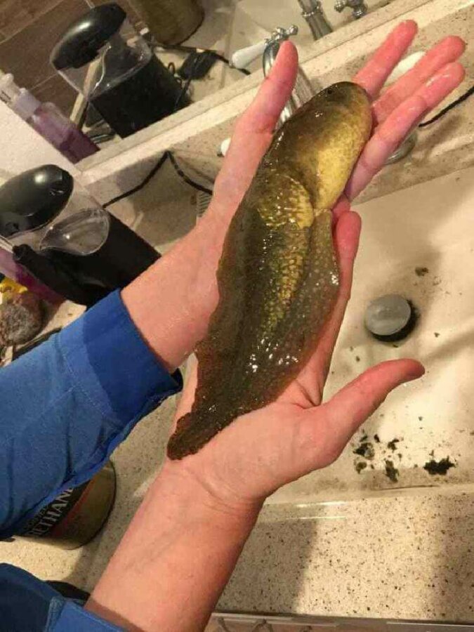 To przerośnięta kijanka, która z powodu zaburzeń hormonalnych nie zamieniła się w żabę, a całą swoją siłę zużyła na to, żeby urosnąć. Niesamowite!