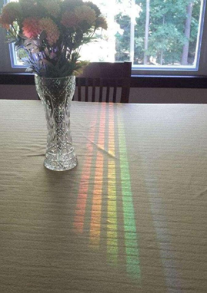 Szklana szyba „zrobiła” tęczę, a oparcie z tyłu krzesła stworzyło idealne gradientowe paski