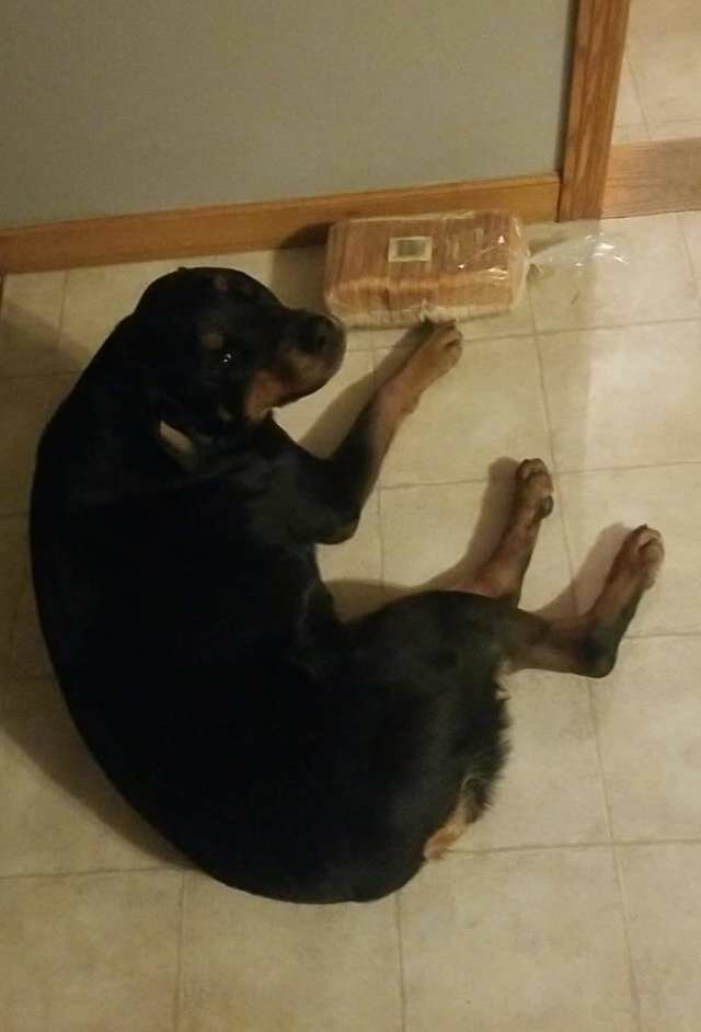 Najwyraźniej pies jest pewien: najcenniejszą rzeczą dla właścicieli jest chleb. W końcu Jakey wielokrotnie obserwowała, jak często go jedzą.