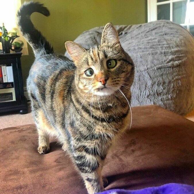 Na szczęście dla Olive została zauważona przez kobietę imieniem Michelle, która nie podziela zwierząt na „dobre” i „złe”. Osoby niepełnosprawne też chcą żyć i cieszyć się życiem, zwłaszcza że kotka nie potrzebuje dużo. Możliwość zabrania zwierzęcia ze schroniska i zapewnienia mu komfortu i przytulności to szansa, której nie można przegapić! W ten sposób zezowata Olive znalazła swój nowy dom.