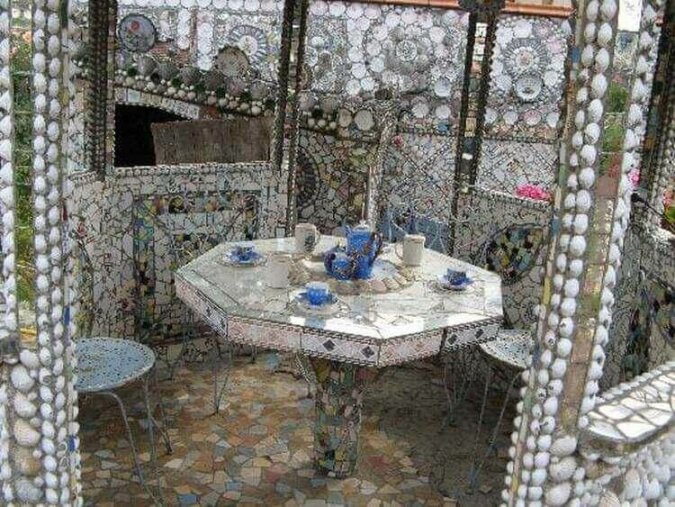 Bez tapet i farb – tak zdecydowała para. Tylko kolorowa porcelana, szkło, potłuczone naczynia i muszle. Od tego czasu stało się to zwyczajem. Właściciel już nie żyje, jego syn kontynuuje jego pomysł, a turyści nie mogą przejść obok tego wyjątkowego miejsca.