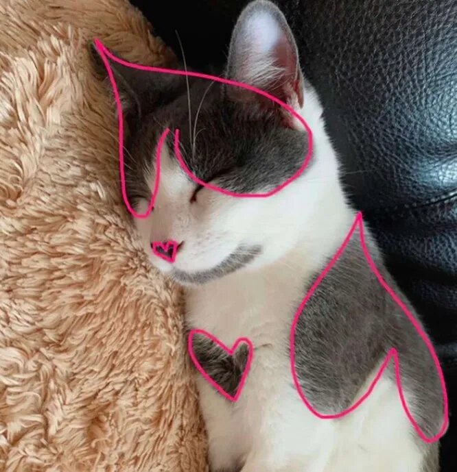 „Jedna była na jego klatce piersiowej, a potem zauważyłam, że jego nos był bardziej „w kształcie serca” niż u większości kotów. Pod łapami, brodą i tak dalej - do tej pory znalazłam siedem pełnych serc i dwie plamki, które czasami wyglądają podobnie ”.