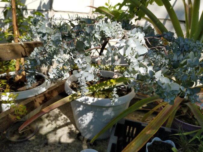 Na przykład wzrost eukaliptusa popielatego na parapecie jest łatwo powstrzymywany dzięki niewielkiemu rozmiarowi doniczki.