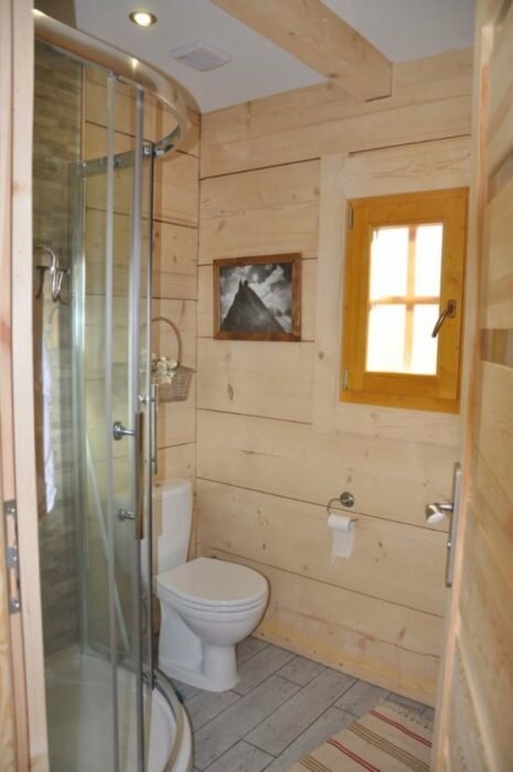 Za kuchnią ukryta jest łazienka z prysznicem i toaletą.