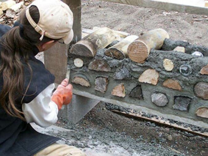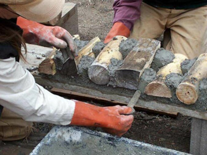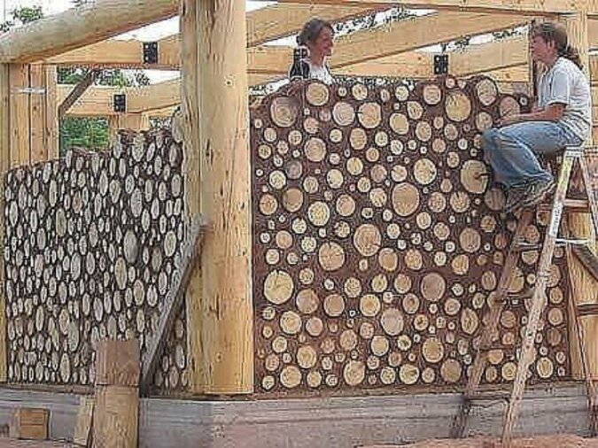 Technologia układania ściany drewnianej jest prosta, ale wymaga dokładnego i starannego układania drewna opałowego na zaprawie o minimalnej grubości spoin. Aby ściana była cieplejsza, istnieje mały sekret. Polega on na tym, że roztworu gliny i słomy nie należy układać w ciągłej warstwie, ale w dwóch równoległych warstwach.