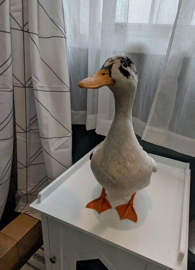 A ta gęś wygląda nawet na zbyt szczęśliwą i wesołą.