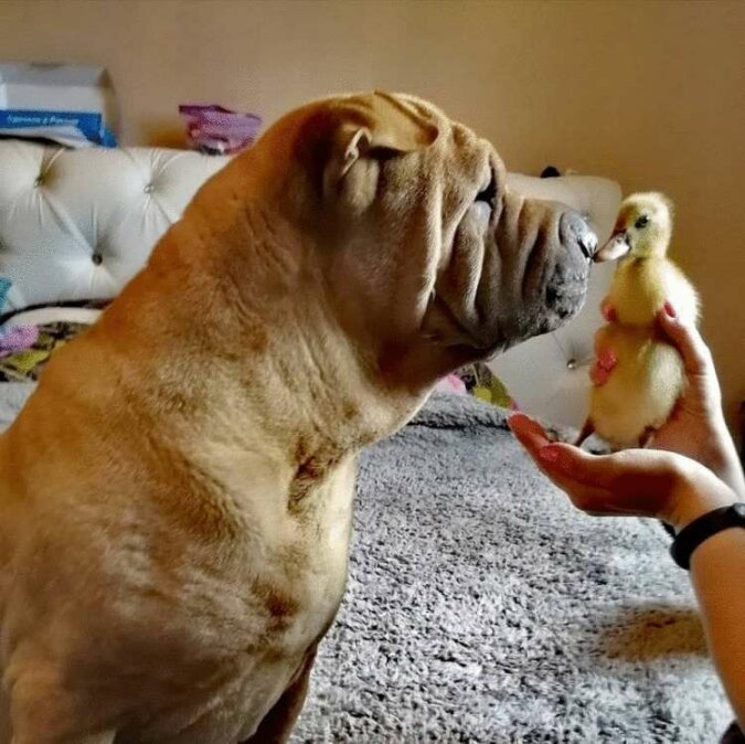 Kaczątko cieszy się wszystkimi przywilejami szczeniaka, może nawet jeść z psich misek!