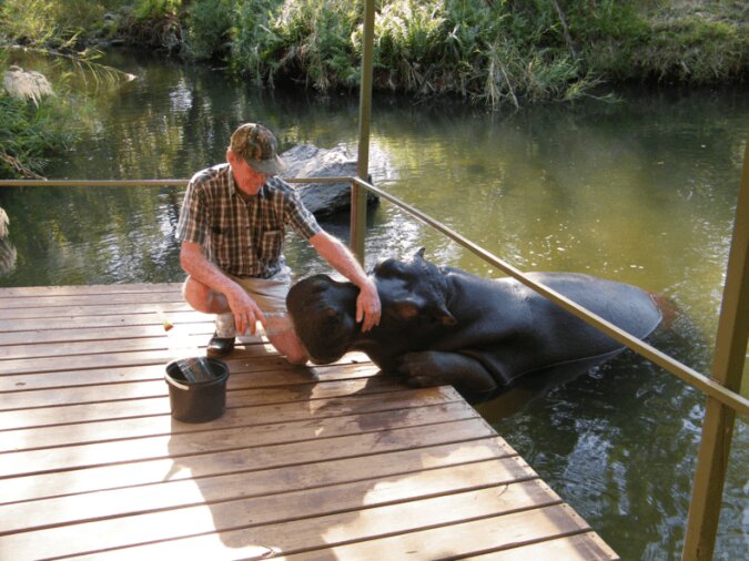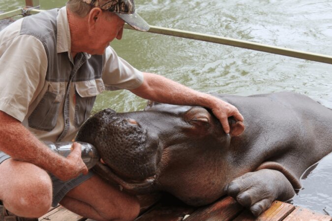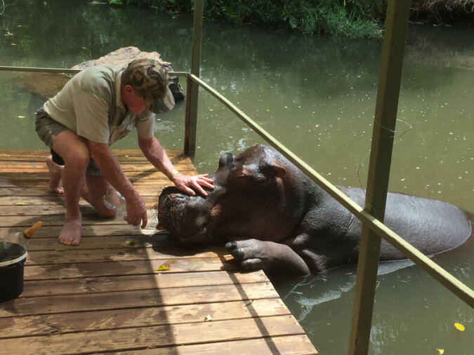 18 lat temu mężczyzna z RPA o nazwisku Joubert uratował małego hipopotama. Ten zwierzak był sam na brzegu rzeki, jego matki nie było w pobliżu. Dorosłe zwierzę mogło umrzeć w wyniku niedawnej powodzi na tym obszarze.