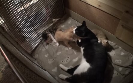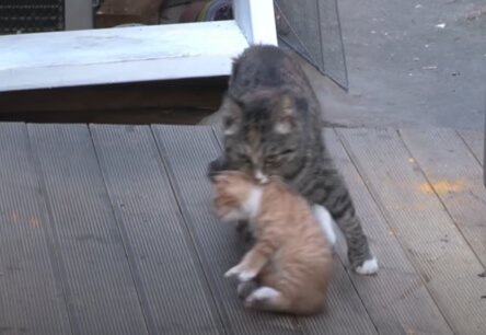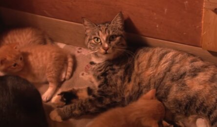 A Guri która odpoczęła, przez miauczenie kociąt słyszy gdzie są, przychodzi i zabiera je z powrotem. Przyczyna dziwnego zachowania czarno-białej kotki stała się jasna, gdy właściciel powiedział, że kilka miesięcy temu straciła wszystkie kocięta naraz. Nie, nie zginęli - mężczyzna po prostu rozdał je różnym rodzinom.