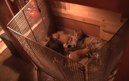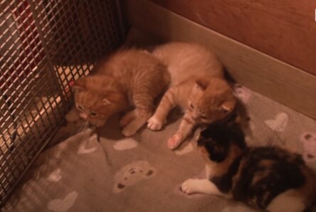 Wszystko zaczęło się, gdy kotka o imieniu Guri urodziła cztery kocięta w specjalnie wyposażonej klatce z miękką pościelą. Kocięta, z których trojka jest w odcieniu rudym, a jeden cętkowany, czują się bezpiecznie, gdy mama jest w pobliżu.
