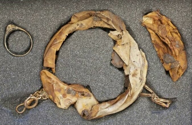 Przez ponad siedemdziesiąt lat damski złoty pierścionek i łańcuszek leżał w ukrytej przegrodzie znajdującej się pod dnem metalowego kubka. Znalezisko zostało odkryte przez przypadek. Kiedy jeden z pracowników muzeum podniósł kubek w celu zabezpieczenia to zauważył, że ma on podwójne dno. Ujawniła się więc tragedia człowieka, przez długi czas ukrywana przed ludzkimi oczami.