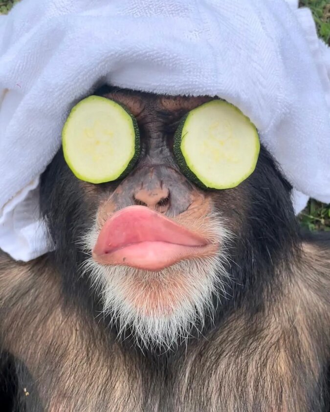 Małpa nie pozwala się nudzić swoim fanom, z przyjemnością bawiąc się wraz z obecnymi opiekunami. Na przykład zdjęcie, na którym opala się i dba o twarz, otrzymało 700 komentarzy i 60 tysięcy polubień. Niby drobiazg, ale przydaje się też opiekunom, gdy pojawiają się nowi patroni, którzy przychodzą popatrzeć na zabawną mordkę tego szympansa, a zwierzak jest radosny - zmarszczki się nie pojawią i cera będzie cudowna.