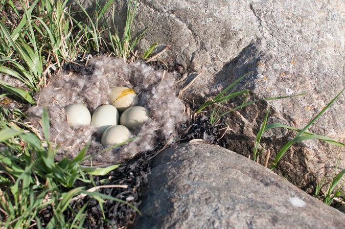Edredon potrzebny jest do ogrzania ciała, ale kiedy przychodzi czas na wylęganie jaj, dzieli się nim z potomstwem. Wyciąga strzępy z klatki piersiowej i wyściela nimi gniazdo, izolując je od zimnych kamieni. Pióra później odrosną, a gniazdo można ostrożnie „okraść", zabierając puch. Zresztą edredon nie wróci tu w przyszłym roku, a zrobi nowe gniazdo.