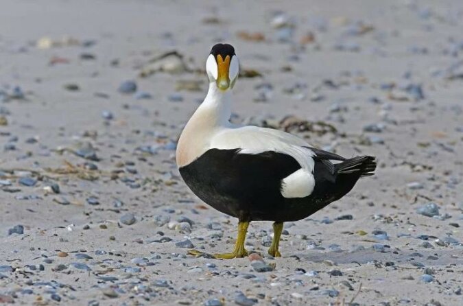 Przepiękny edredon, duża kaczka północna. Źródło bogactwa.