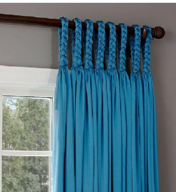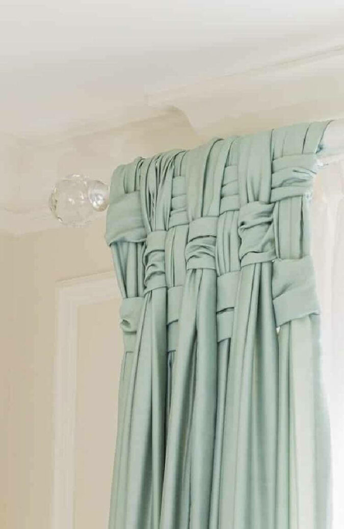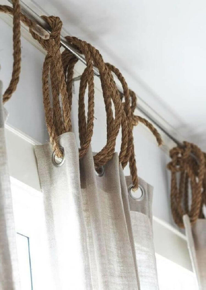 Udekoruj zasłonę tuż pod zawieszeniem za pomocą tych wspaniałych pasujących kolorystycznie sznurków.