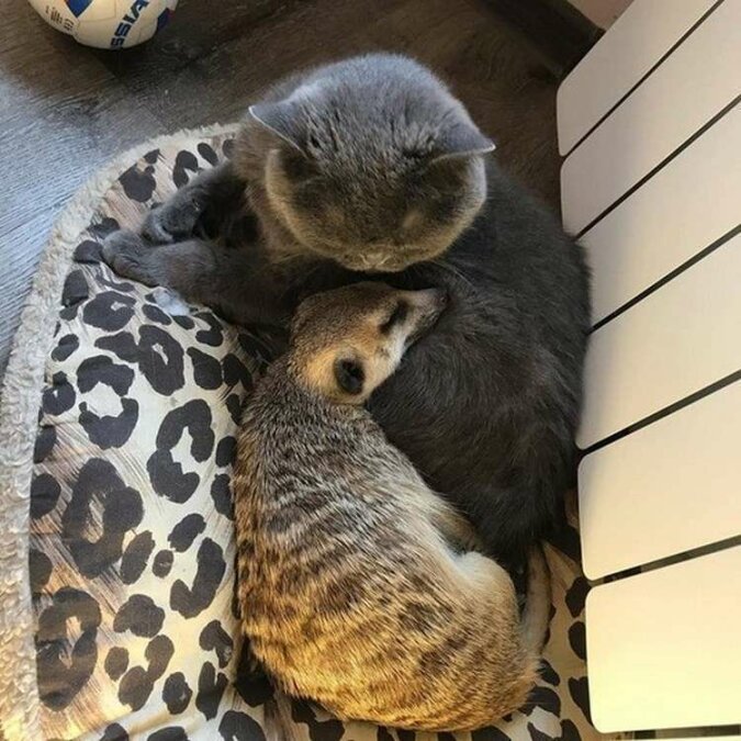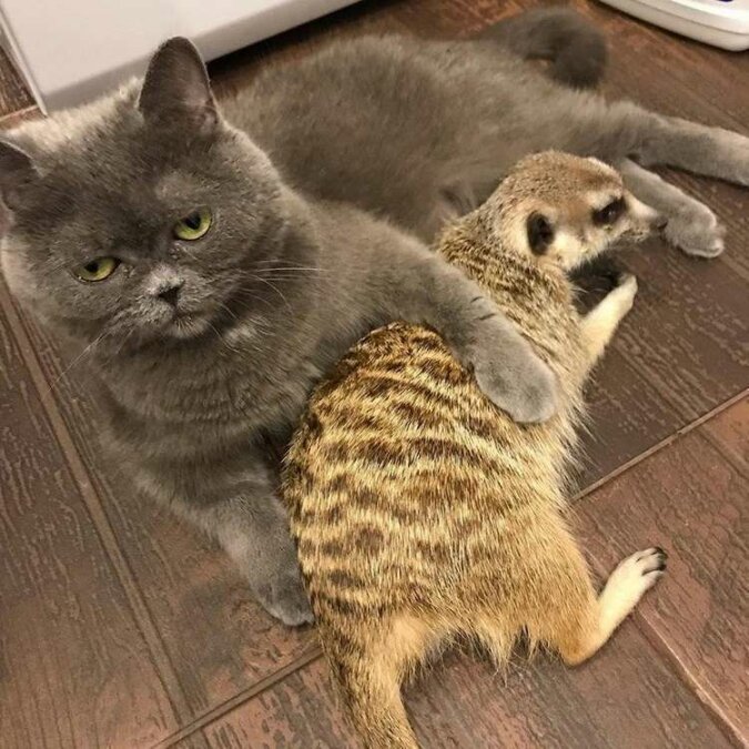 Ta zabawna para natychmiast stała się gwiazdami w Internecie. Gdy tylko surykatka Surya zobaczyła kota Nicei, natychmiast zobaczyła w nim bratnią duszę. Urocza para mieszka teraz ze swoją właścicielką Jekatieriną Kuraevą w Petersburgu.