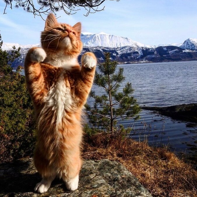 „Zawsze przychodzi nam powiedzieć dobranoc. Każdego ranka widzimy jego piękną mordkę, ledwo zdążywszy otworzyć oczy. Wiem, że jest najszczęśliwszym kotem na świecie.”