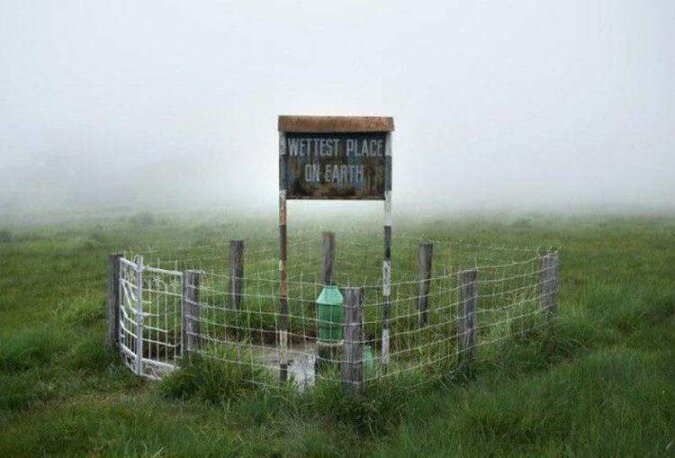 Znak „Najbardziej mokre miejsce na ziemi”.