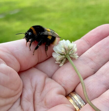 Dwa tygodnie temu 13-letnia Lacey Schillinglaw poszła na spacer z psem i zauważyła dużego trzmiela leżącego nieruchomo na chodniku. Dziewczyna pochyliła się nad owadem i zorientowała się, że trzmiel jeszcze żyje - tylko miał coś ze skrzydłem. Lacey nie chciała zostawiać trzmiela, gdzie mogliby na niego nadepnąć ludzie lub psy, albo rowerzyści mogli przejechać. Wyciągnęła rękę i pozwoliła trzmielowi wdrapać się na nią.