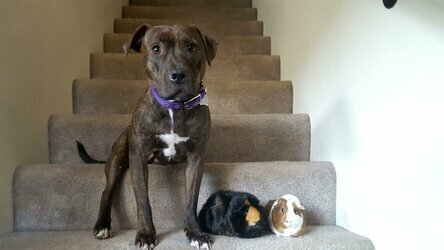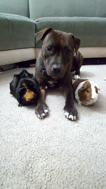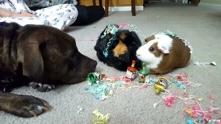 Christie ma dwie świnki morskie - Fridę i Pandorę. Po przywiezieniu Mokiego do domu kobieta trochę martwiła się, jak pies na nie zareaguje. Nie chciała, żeby nowy zwierzak przestraszył lub, co gorsza, ugryzł jej świnki. Ale jej obawy były na próżno - od pierwszej minuty ta trójka zaprzyjaźniła się.
