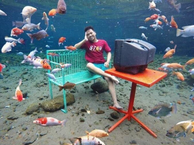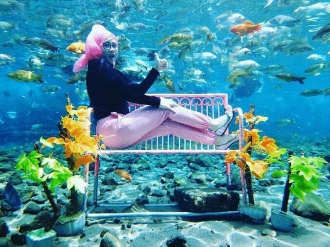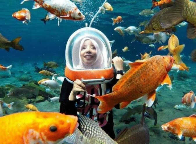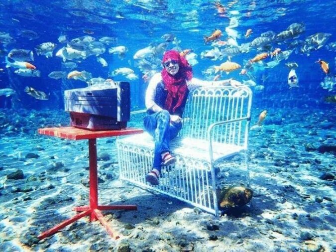W końcu tutaj możesz zrobić zdjęcie pod wodą w otoczeniu ryb, a nawet z fajnymi rekwizytami!